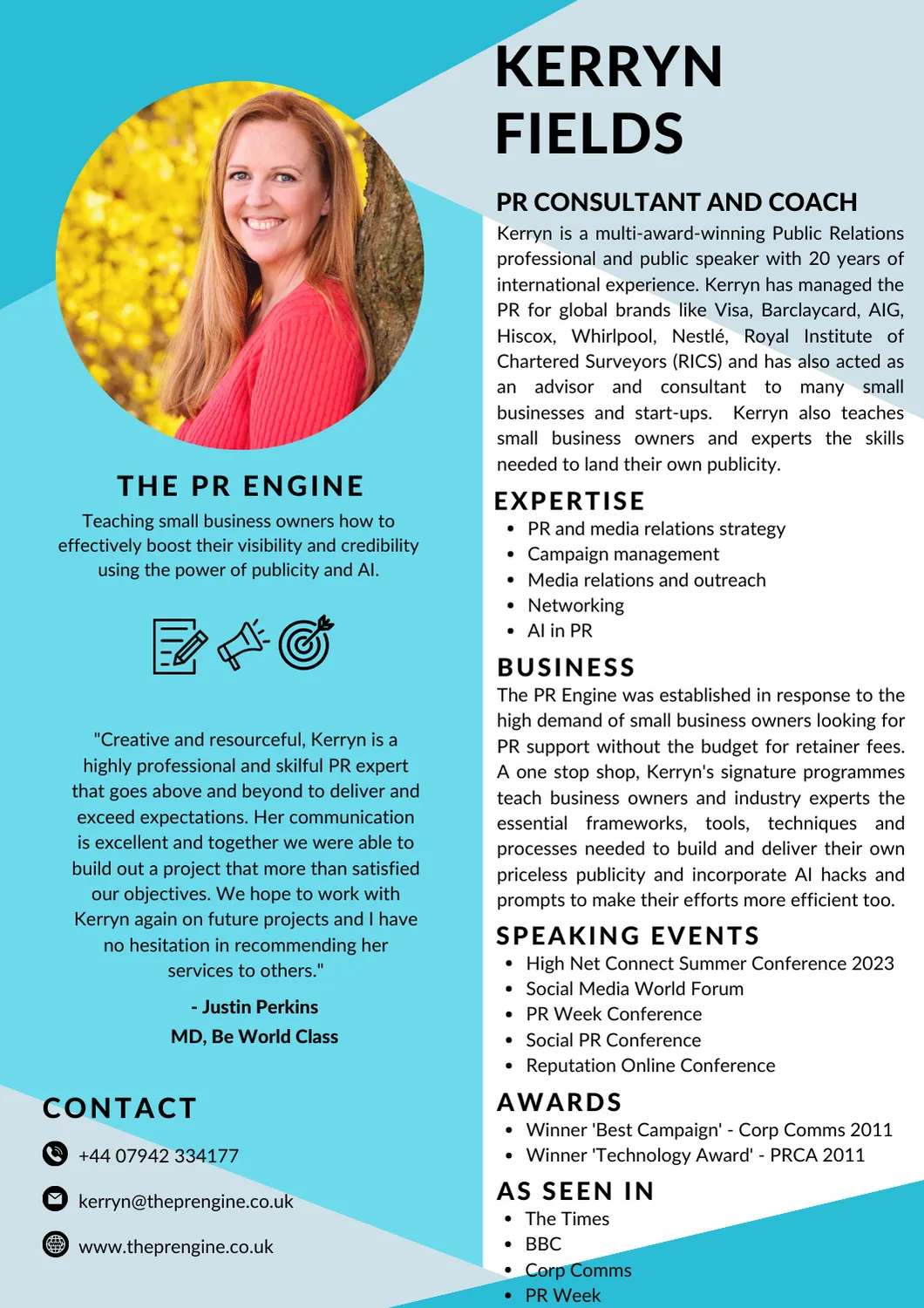 Over the past 20yrs, I have managed the PR for global brands like Visa, Barclaycard, AIG, Hiscox, Whirlpool, Nestlé, Royal Institute of Chartered Surveyors (RICS) and others, and have been an advisor and consultant to many small businesses and start-ups.